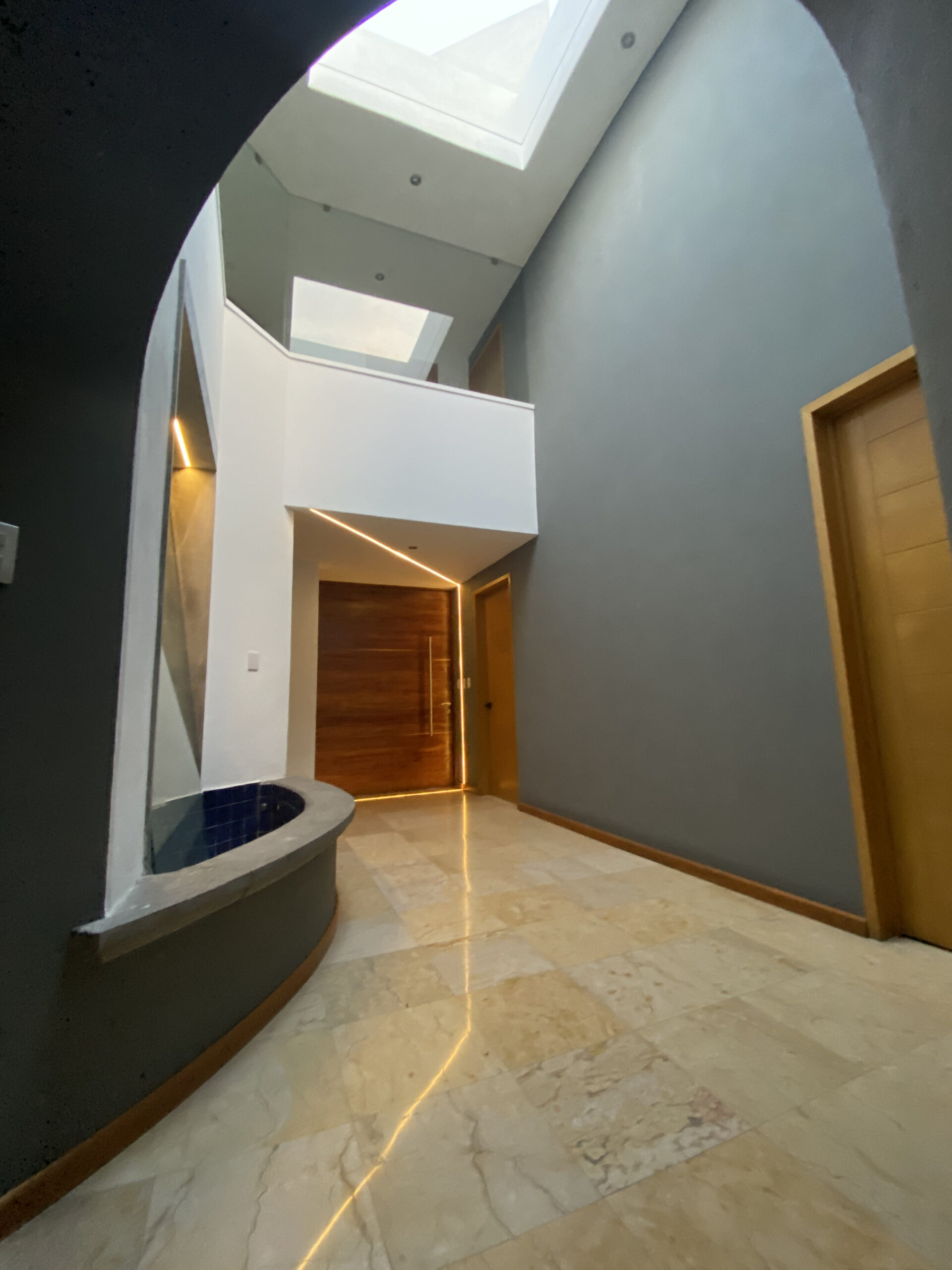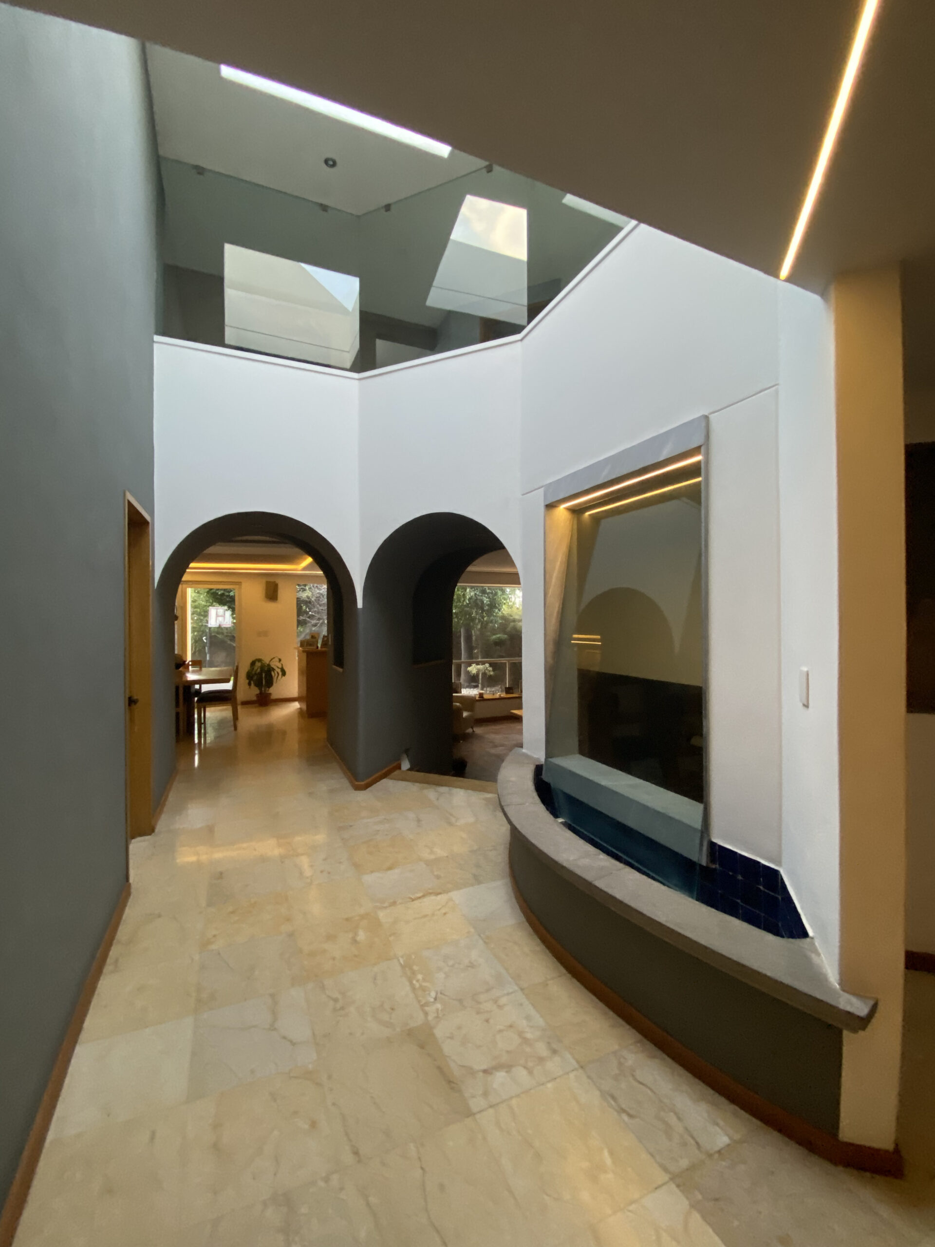 Completamente remodelada con diseño único, calidad en acabados, ubicación estratégica que conecta a diversos puntos de la ciudad. Terreno de 710 m² y construcción de 600 m². En planta baja: amplia sala y comedor, bar, cocina equipada, biblioteca, sala de juegos, sala de TV con chimenea, baño de visitas, jardín amplio estilo japonés con cancha de fútbol (200 m²), área social conectada a jardín y terrazas, cuarto de servicio y cuarto de lavado. En planta alta: 4 habitaciones con baño completo cada una, principal con vestidor y terraza amplia con pérgolado (opción a 5ta recámara), gimnasio. En 3er nivel: roof garden con jacuzzi y área social con vista panorámica.